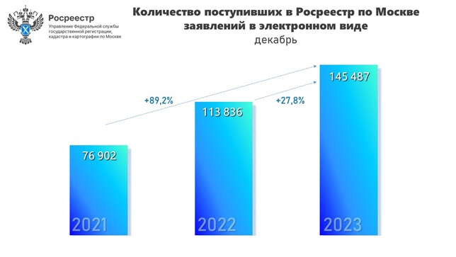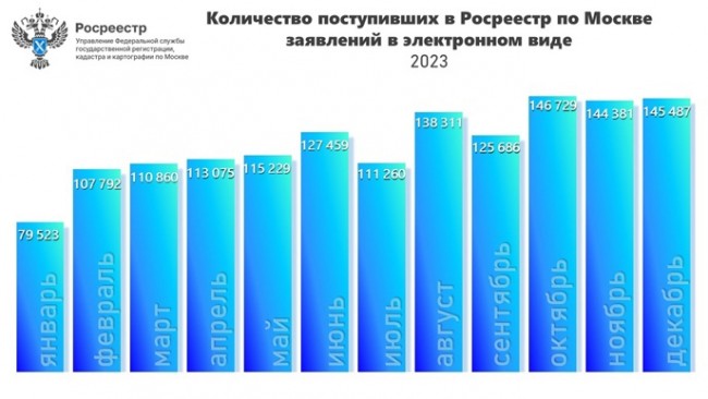 В декабре 2023 года Управлением Росреестра по Москве принято 145 487 онлайн-заявлений.
