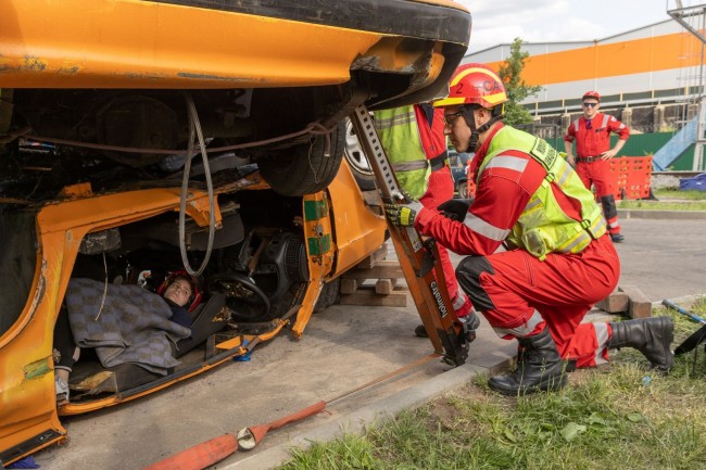 «Это комбинация сложных ситуаций, с которыми сталкиваются спасатели в реальной работе на ДТП. Конечно, чтобы все так совпало: и машина на машине, и машина перевернувшаяся, и пострадавший под машиной – это очень редкое стечение обстоятельств. Для спасателей это серьезная многосоставная задача. Работать в такой ситуации сложно, нужно уделять много внимания координации аварийно-спасательных работ, следить, чтобы работы по разным пострадавшим проводились одновременно. Только так можно добиться высокой скорости эвакуации пострадавших и не допустить ухудшения их состояния», – поделился впечатлениями спасатель 1-го класса АСО №9 столичного Пожарно-спасательного центра Максим Шлычков.