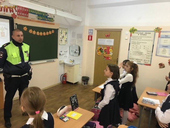 В школе № 1467 состоялась встреча учащихся с сотрудником ГИБДД. Об этом сообщается на странице образовательного учреждения во «ВКонтакте».