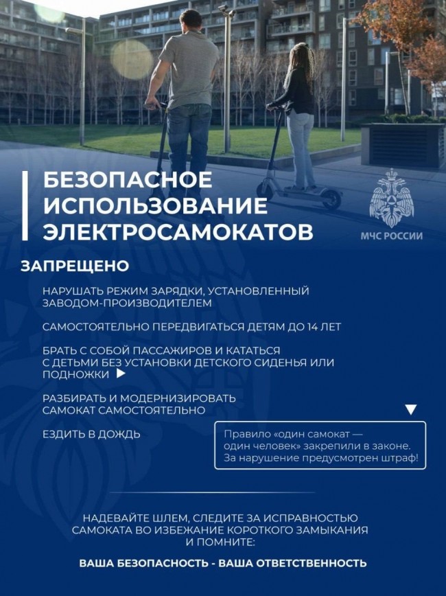 Настоятельно рекомендуем приобрести противопожарное полотно и пожарный извещатель: хранение самоката на полотне обезопасит квартиру от распространения огня, а срабатывание извещателя предупредит владельцев о происшествии.