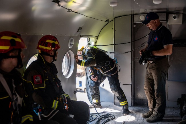 В течение двух недель более 100 работников столичного Пожарно-спасательного центра проходили обучение по программе повышения квалификации спасателей «Беспарашютная десантная подготовка». Учебные часы включали в себя как теоретические занятия со спасателями, так и практическую отработку действий сначала на наземном тренажере, а потом уже и с борта воздушного судна.