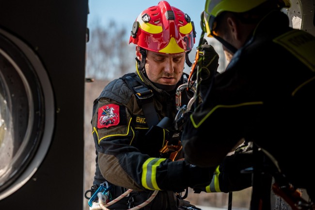 «Снаряжение, которое мы используем при проведении работ на высоте, оно такое же, как и при десантировании, но принцип его применения немного отличается. Поэтому нужно переучиваться и посмотреть на снаряжение с другой стороны. Это вызывает положительные эмоции у спасателей и, конечно, повышает профессионализм при работе на высоте», – поделился начальник АСО № 3 ГКУ «ПСЦ» Денис Маркелов.