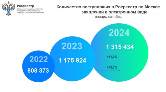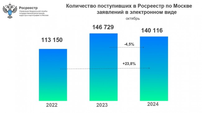 В октябре 2024 года в Управление Росреестра по Москве поступило 140 116 онлайн-заявлений. К сентябрю 2024 года (126 699) динамика составила 10,6%.