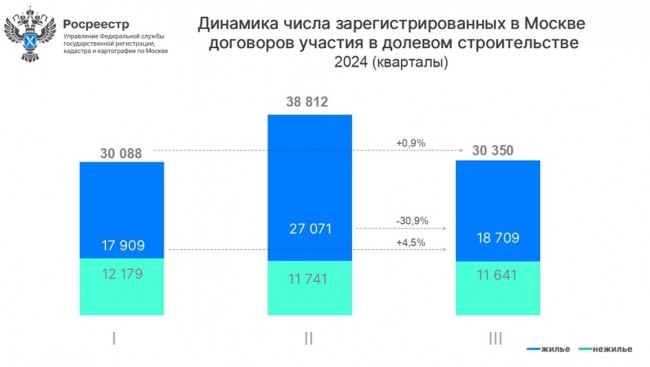 «Сентябрь традиционно предполагает повышенную деловую активность на рынке недвижимости. Несмотря на внушительный уровень ставки кредитования и изменения банками условий ипотеки, в том числе семейной, направленные действия застройщиков по поддержанию спроса на рынке первичной недвижимости способствовали увеличению показателей зарегистрированных договоров участия в долевом строительстве. Более того, этот рост соответствует аналогичной динамике августа-сентября последних лет (2021-2024), когда в среднем показатели регистрации сделок с квартирами увеличивались на 28,4% за месяц, а суммарно в жилом и нежилом фонде - на 16,5%», — отметил Игорь Майданов, руководитель Управления Росреестра по Москве.