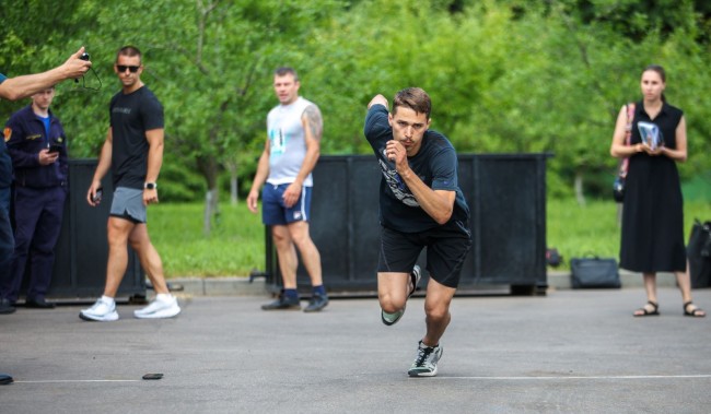 Следующий этап был нацелен на оценку физической формы пожарных: сначала челночный бег 10*10, затем подтягивания и километровый кросс. Этапы шли друг за другом, времени для отдыха практически не было – пожарный должен быть сильным и выносливым.