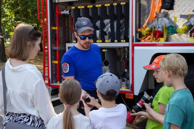 – примерить экипировку пожарных и спасателей для эффектных снимков на память