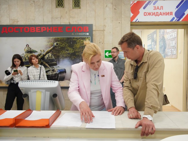 Депутат Московской городской думы Наталия Метлина стала гостьей пункта отбора на военную контрактную службу на ул. Яблочкова, д. 5, стр. 1.