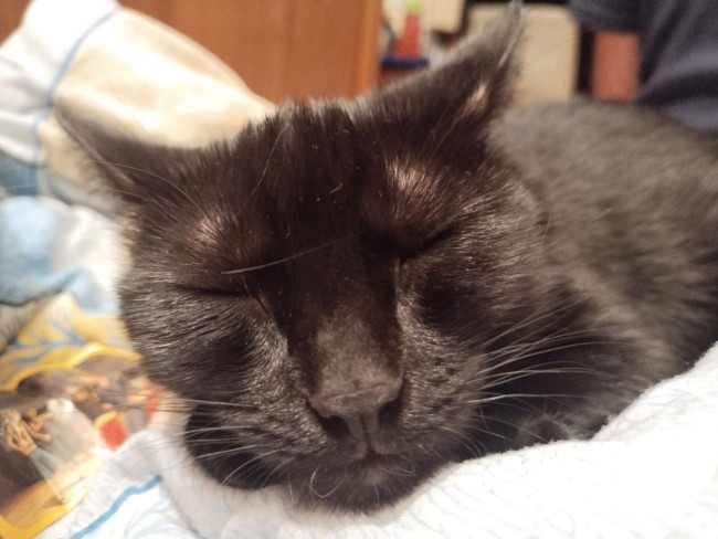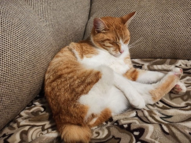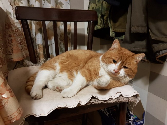 Со временем пушистый дачник стал более контактным и даже стал копировать меня. Например, спит головой на подушке, а туловищем на матрасе. В итоге я спокоен, что в доме не заведутся мыши, а Борис всегда обогрет и сыт.