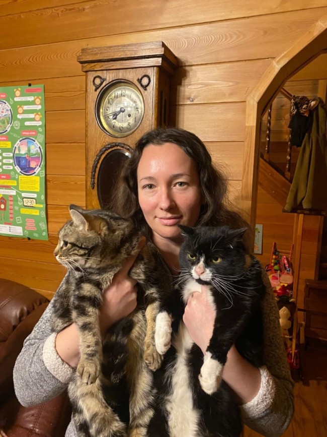 У себя во дворе мы заметили кошку, которая постоянно ходила с котенком. Ирина их подкармливала, причем пушистые друзья относились к ней с особым доверием. К слову, мы не только кормим и лечим животных, но и стерилизуем. В один из дней мы отвезли маму-кошку в ветклинику. Позже нам перезвонили с вопросом: «Вы кого нам привезли?» Кошка оказалась котом. В итоге «воспитателя» забрали из клиники наши знакомые, а мы взяли котенка.