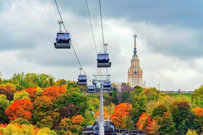 Канатная дорога протяженностью 720 метров связывает Воробьевы горы, ул. Косыгина и комплекс «Лужники».