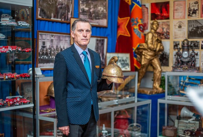Работник Пожарно-спасательного центра Москвы, огнеборец-ветеран и профессиональный экскурсовод Евгений Бобылёв проводит экскурсии по историческому зданию Пречистенского пожарного депо в Хамовниках. Евгений Владимирович лично занимается оформлением экспозиции с 2012 года.