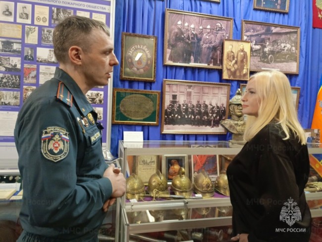 Экскурсия началась с рассказа об истории Пречистенского пожарного депо, являющегося памятником культурного наследия федерального значения, расположенного в комплексе зданий усадьбы государственного деятеля и дипломата генерала А.П. Ермолова, и продолжилась в исторической экспозиции.