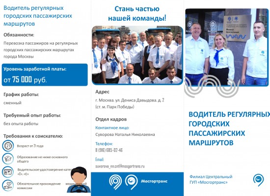 Филиал центральный ГУП «Мосгортранс»​​​​​​​ приглашает на работу водителей регулярных городских пассажирских маршрутов
