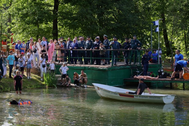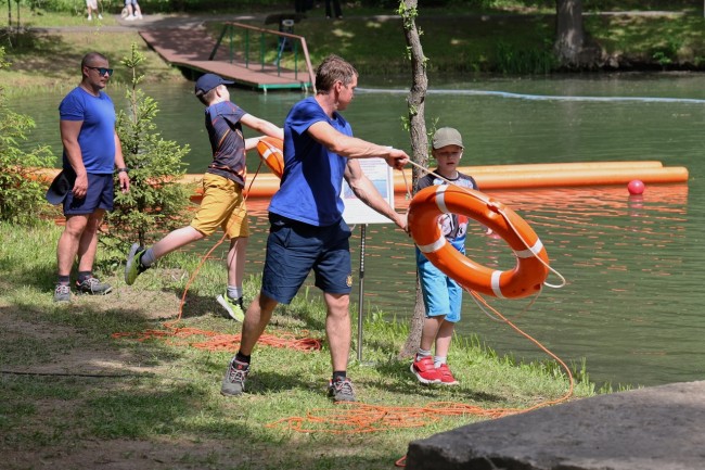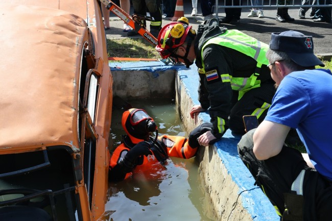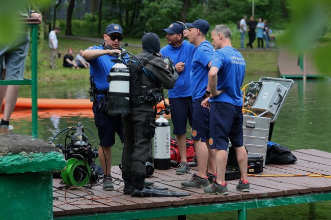 Заняли свою локацию и спасатели на воде. Украсили её водолазным снаряжением, пожарно–спасательным оборудованием и техникой: выставили подвижный спасательный пост, надувную лодку, водолазную станцию быстрого развертывания, все виды костюмов, телескопический спасательный комплект и многое другое. Организовали водолазные спуски и целых пять учебных точек, где провели мастер–классы. Посетители совместно со специалистами отрабатывали спасение человека из условной ледяной полыньи, оказывали ему первую помощь, подавали спасательные круги и концы Александрова.