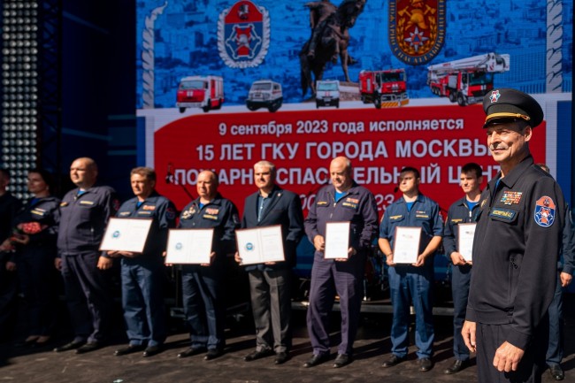 На главной сцене Московского урбанистического форума в олимпийском комплексе «Лужники» состоялось празднование 15-летнего юбилея столичного Пожарно-спасательного центра.