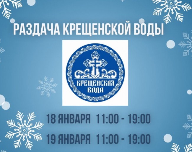 В храме Казанской Иконы Божией Матери в Орлово 18 и 19 января будет проходить раздача крещенской воды. Все желающие могут прийти за ней с 11:00 до 19:00.