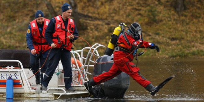 На одном из этапов команды отработали выход катера по тревоге. К «месту бедствия» отправлялся «Вельбот» со спасателями и водолазом на борту, который облачался в снаряжение прямо на полном ходу. Для прохождения этой дистанции сборным отводилось всего 6 минут. Именно столько человек может пробыть под водой без серьезных последствий для здоровья. Все происходит за несколько мгновений: мотолодка подходит к нужному «квадрату», капитан бросает якоря, водолаз ныряет с кринолина, разыскивает на грунте манекен, поднимает «пострадавшего» на поверхность и буксирует его к борту спасательного судна. Капитан команды вскидывает руку над головой, кричит судьям: «Финиш!», и секундомеры останавливаются.