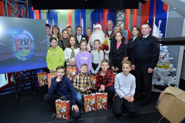 Гостей встречал лично руководитель Телестудии «Петровка-38» Максим Сазонов и почти вся его дружная команда, за исключением тех, кто был задействован в неотложных съемочных мероприятиях. Настоящим сюрпризом для ребят стало, что в роли «Деда Мороза» выступил один из корреспондентов – Денис Бушуев.