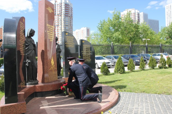 По сложившейся традиции встреча началась с возложения цветов к расположенному на территории Управления внутренних дел мемориалу, установленному в память о сотрудниках органов внутренних дел, погибших при исполнении служебного долга.