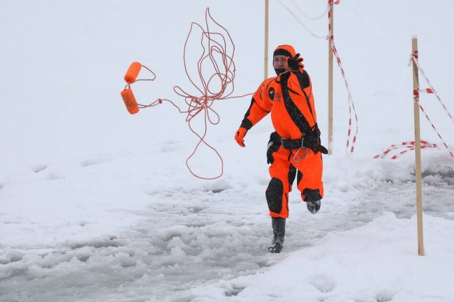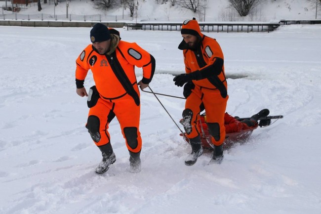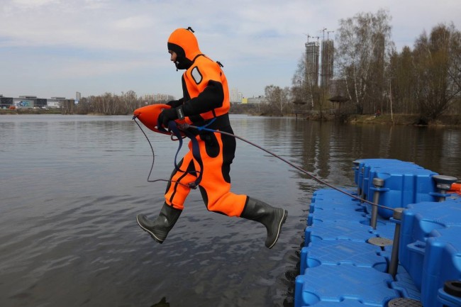 В холодное время года спасатели Московской городской поисково-спасательной службы на водных объектах носят специальные гидрокостюмы. Эта экипировка хорошо защищает от воды и холода, сделана из особого материала – неопрена – и за яркий цвет зовётся специалистами «рыжик».