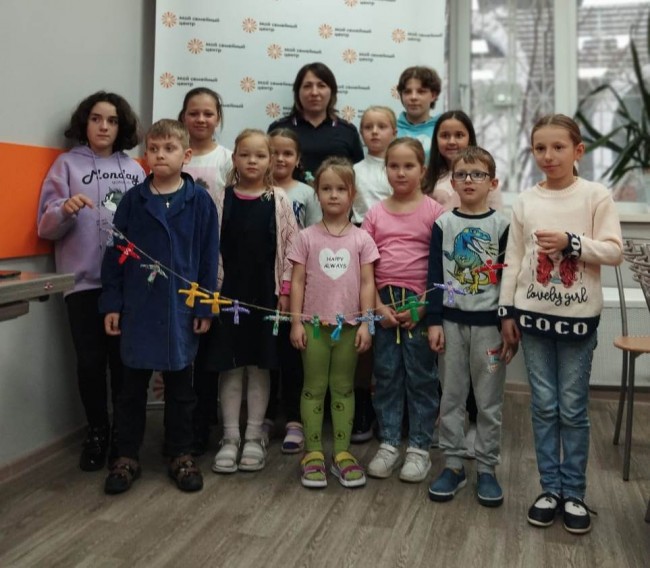 Сотрудник транспортной полиции провела для воспитанников цента мастер-класс по изготовлению «гирлянды дружбы», которая символизирует многонациональный российский народ.