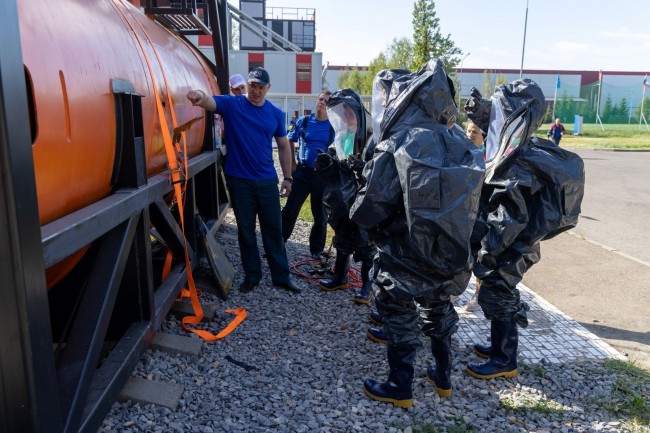 Возможно, одним из самых сложных заданий для команд была ликвидация аварийной ситуации на железнодорожных путях. Согласно легенде, произошла утечка химически опасного вещества из железнодорожной цистерны. Участникам нужно было устранить течь с помощью так называемого «пластыря». Главная трудность заключалась в том, что все действия команда должна была выполнять в герметичных костюмах химической защиты, работать в которых очень непросто.