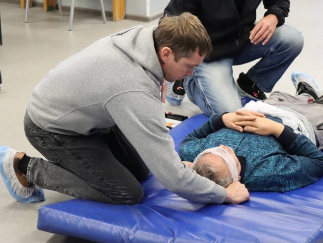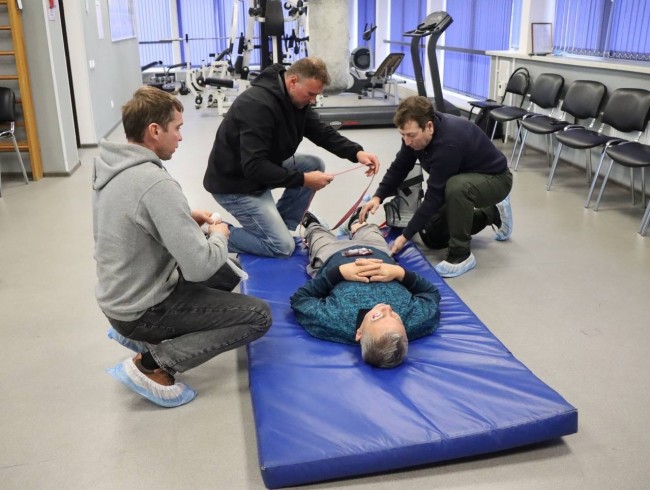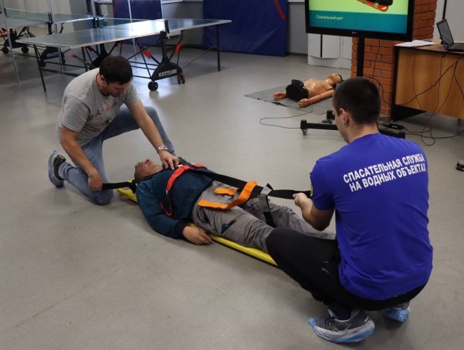 Олег Митяев, ведущий специалист отдела подготовки, напоминает коллегам алгоритмы оказания первой помощи. В частности, правильное наложение жгутов для остановки кровотечений, обнаружение переломов по прямым и косвенным признакам, помощь при переохлаждении и обморожении. На встречах участники практикуют также закрепление пострадавшего на спинальном щите и проведение сердечно-лёгочной реанимации (СЛР).