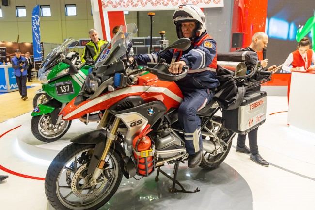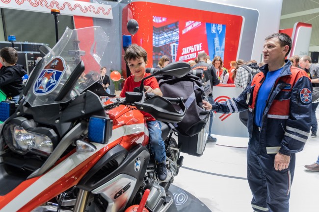 На своем стенде Департамент ГОЧСиПБ представил расчет быстрого реагирования, состоящий из двух пожарно-спасательных мотоциклов. Мотогруппы были созданы для более оперативного реагирования на происшествия и сокращения времени прибытия подразделений Пожарно-спасательного центра Москвы к месту вызова.