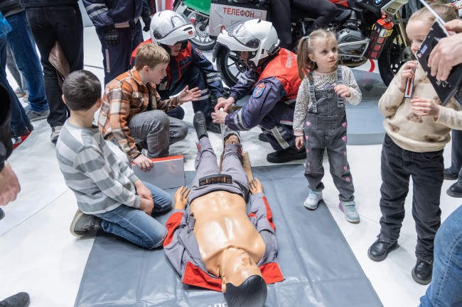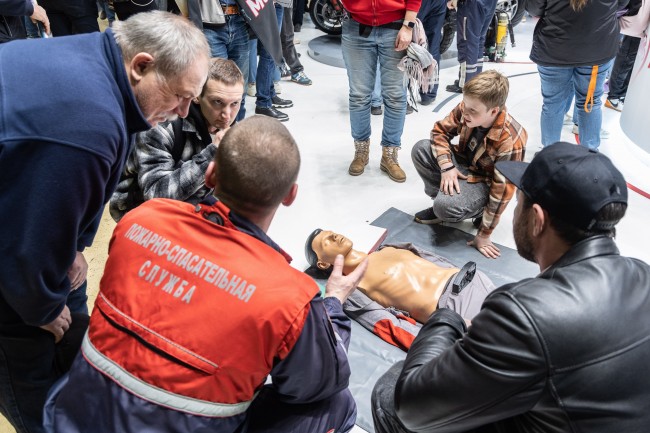 Помимо демонстрации оборудования и специальной формы спасателей, для гостей мероприятия проводился мастер-класс. Работники столичного Пожарно-спасательного центра рассказывали о способах оказания первой помощи пострадавшим при дорожно-транспортных происшествиях, и все желающие могли попробовать себя в роли спасателя.