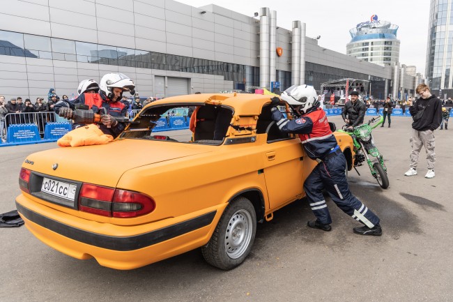 Особый интерес у юных любителей мототехники вызвала возможность сфотографироваться на «железном коне» спасателей. На улице посетителей «Мотовесны 2024» ждало настоящее шоу от работников Пожарно-спасательного центра: зрителям продемонстрировали, как оперативно расчеты быстрого реагирования справляются с деблокацией пострадавшего в ДТП. Любители забраться повыше могли полазить на скалодроме под присмотром опытных спасателей-альпинистов и взмыть на высоту 28 метров на пожарном телескопическом подъемнике «Спайдер».
