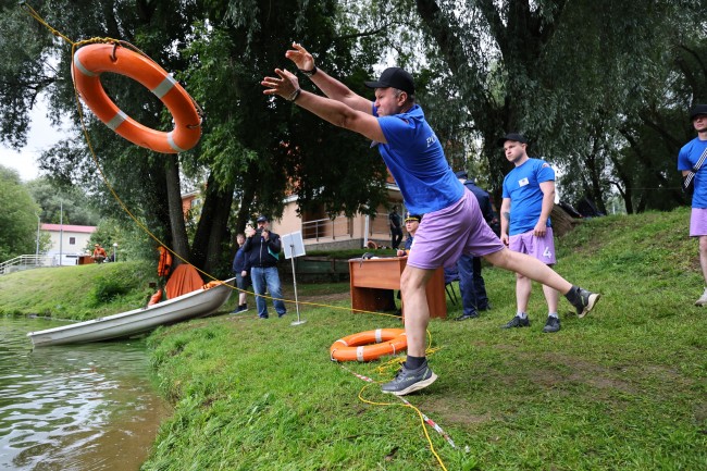 На берегу Строгинской поймы проводились этапы с подачей конца Александрова и спасательного круга на дальность и точность. Подача спасательного круга выполнялась на расстояние 10 метров от береговой черты, а конца Александрова на 15 метров. Участникам давалось две попытки.