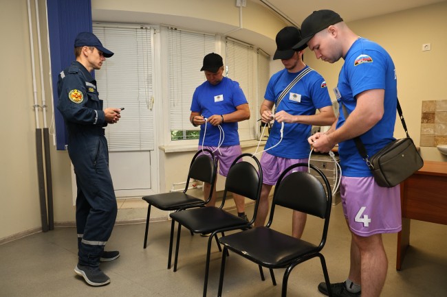 Пройдя проверку, команды перешли к практике, которая началась с вязания морских узлов.