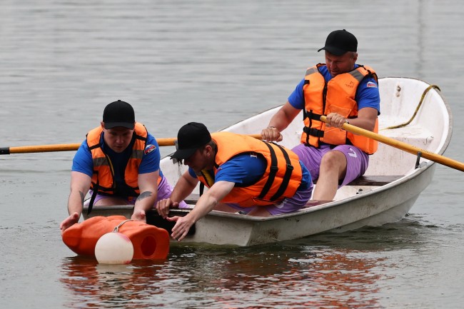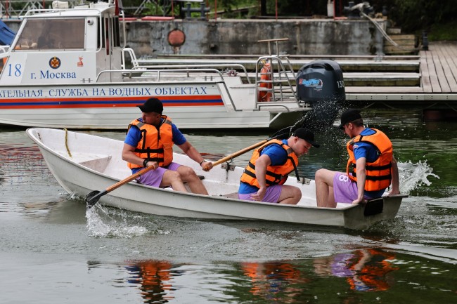 Самые зрелищные этапы – маневрирование на гребной лодке и спасение условного утопающего с поверхности воды. Здесь была важна скорость выполнения упражнения, ведь счёт шёл на секунды.
