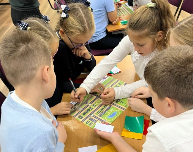 Школьники, под чутким руководством организаторов занятий, смогли построить наглядные безопасные маршруты от дома в школу и обратно, используя импровизируемые макеты, повторяющие дорожную обстановку возле образовательных организаций, которые они посещают.