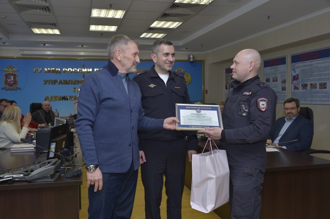 Члены Общественного совета и заместитель начальника Управления внутренних дел по западному административному округу майор полиции Ким Лернер поблагодарили сотрудников полиции за профессионализм, решительность, мужество и самоотверженность в выполнении служебных обязанностей. Председатель Общественного совета при УВД по ЗАО Сергей Костриков вручил полицейским благодарности и памятные подарки.
