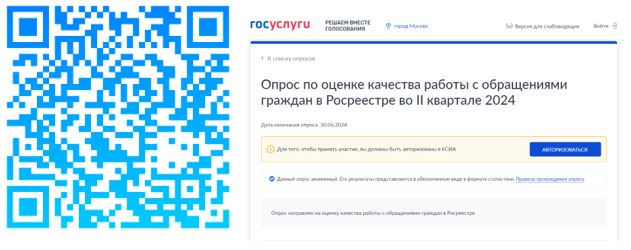 В целях повышения качества предоставления государственных услуг Росреестр проводит опрос, где оценивается качество работы ведомства с обращениями граждан во II квартале 2024 года.
