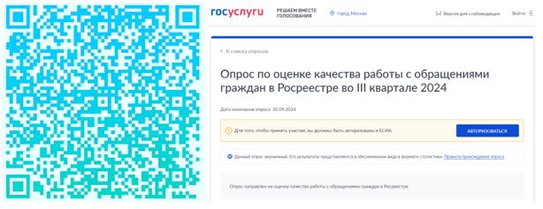 В целях повышения качества предоставления государственных услуг Росреестр проводит опрос, где оценивается качество работы ведомства с обращениями граждан в III квартале 2024 года.
