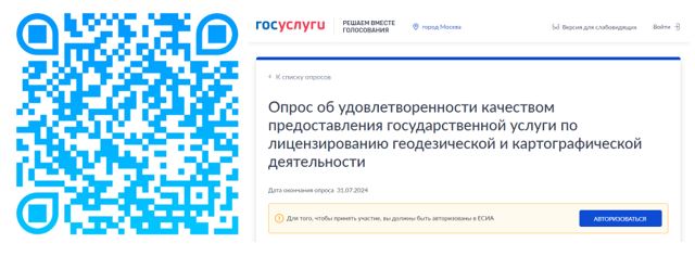 В целях повышения качества предоставления государственных услуг и исполнения функций Росреестра проводится опрос, где оценивается удовлетворенность граждан качеством предоставления государственной услуги по лицензированию геодезической и картографической деятельности.