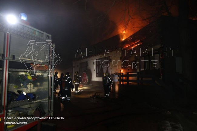 Возгорание ликвидировано в 02:17 на площади 130 кв.м. Пострадавших нет.