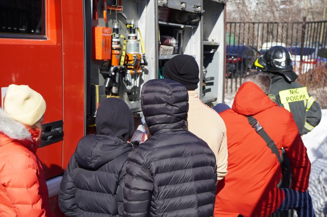 Буквально через несколько минут школьники и их родители уже выстроились в очередь возле огнеборцев, наперебой задавая вопросы о быте пожарных, их боевой работе и интересных случаях из практики тушения пожаров. Пожарные продемонстрировали собравшимся детям и взрослым инструменты, которые они используют в повседневной работе, провели экскурсию по пожарному автомобилю и, конечно, дали каждому вдоволь насидеться в автоцистерне, потушить условный пожар и померить боевую одежду.