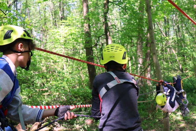 В первый день ребята должны были, ориентируясь по карте, пройти по лесу около девяти километров «Маршрута выживания». Последовательно проходя заданные точки маршрута, школьники демонстрировали умение вязки узлов, знание правил дорожного движения, передавали информацию с помощью флажков, участвовали в скоростном сплаве, упражнялись в подаче конца Александрова и спасательного круга, спасали «пострадавшего» и оказывали ему первую помощь. Используя смекалку и снаряжение, команды переправлялись через болото, ручей и по навесной переправе, проходили «Босой этап» в созданной из подручных средств обуви.