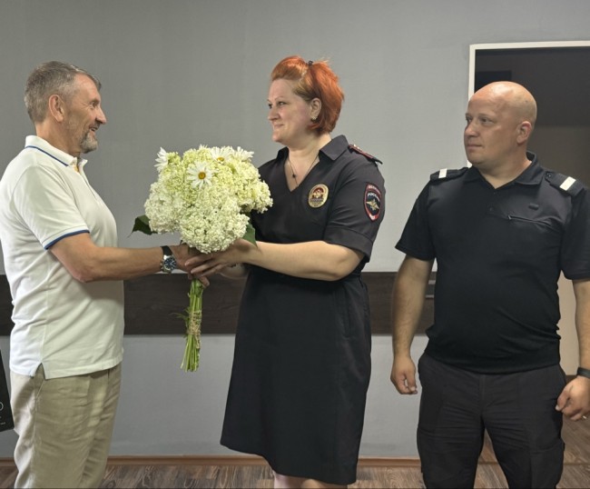Заместитель начальника УВД по ЗАО майор полиции Ким Лернер поздравил полицейскую семью, пожелал любви, счастья, гармонии, семейного благополучия и взаимопонимания. Начальник Отдела МВД России по району Фили-Давыдково г. Москвы подполковник полиции Андрей Дегтярев отметил хорошие служебные результаты сотрудников. Председатель Общественного совета при УВД по ЗАО Сергей Костриков и член Общественного совета Вячеслав Ковалев подготовили семье памятные подарки, пожелали супругам крепкого семейного союза, много приятных значимых событий, быть всегда нужными и надежными друг для друга не только в семейной жизни, но и в профессиональной деятельности, и подарили хранительнице очага – Наталии красивый букет с ромашками – цветка-символа Дня семьи, любви и верности.