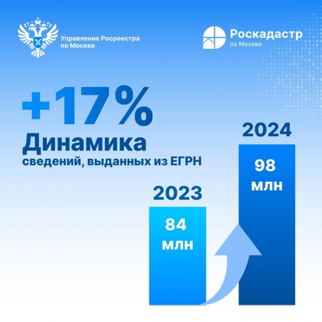 В 2024 году в Москве выдано свыше 98 млн выписок из Единого государственного реестра недвижимости (ЕГРН). Спрос на предоставление сведений из реестра недвижимости вырос на 17% по сравнению с аналогичным периодом 2023 года.