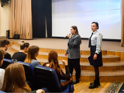 Член Общественного совета при УВД по ЗАО Марьяна Мгебришвили, оперуполномоченный ОНК УВД по ЗАО ГУ МВД России по городу Москве подполковник полиции Анастасия Мясникова и старший инспектор отделения по делам несовершеннолетних ОМВД России по району Тропарево-Никулино г. Москвы майор полиции Галина Рожнова побеседовали с учениками 9–10 классов одной из школ западного административного округа столицы.