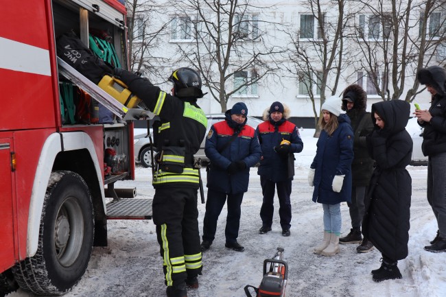 Работники пожарно-спасательного подразделения рассказали собравшимся об основных причинах возникновения возгораний и о методах их предупреждения, познакомили с аварийно-спасательном оборудованием, продемонстрировали работу боевого расчета на пожарном автомобиле.