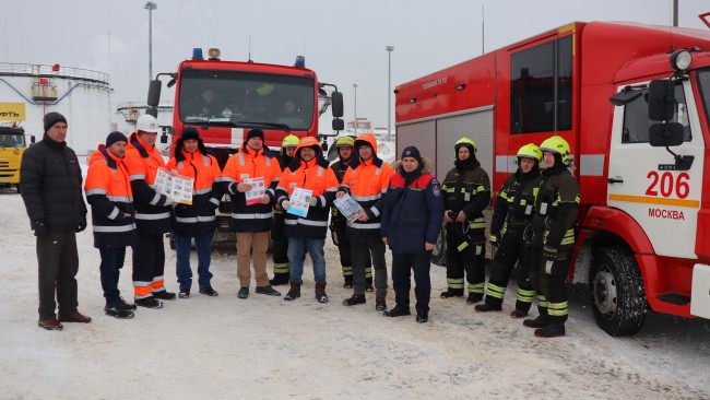 Участники мероприятия повторили алгоритм действий при обнаружении признаков возгорания в помещении и в резервуарном парке, расположенном на территории, и получили ответы на вопросы о взаимодействии с дежурными службами и пожарными расчетами.