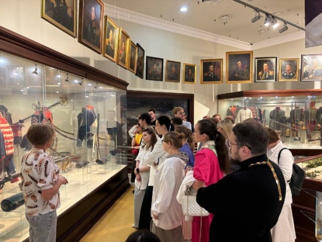Затем для гостей организовали трапезу и просмотр документального кинофильма о Бородинском поле. После этого экскурсанты отправились к месту упокоения основательницы обители Марии Тучковой в церкви Спаса Нерукотворного и к главному музею комплекса.