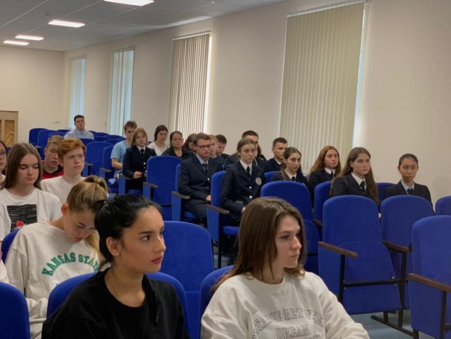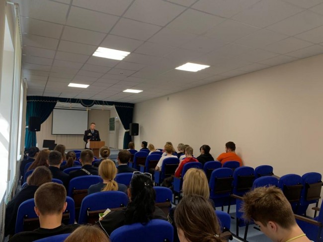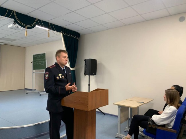 Заместитель начальника ЛО МВД России в аэропорту Внуково полковник полиции Виктор Шехов встретился со студентами колледжа Всероссийского государственного университета юстиции (РПА Минюста России).