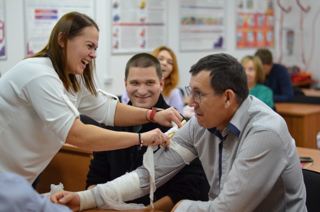 Юлия Емельянова, преподаватель Учебно-методического центра по ГО и ЧС ЗАО и ТинАО: «Умение оказать первую помощь – это очень важный жизненный навык, полезный для каждого человека вне зависимости от возраста и рода занятий. Задача человека, оказывающего первую помощь – спасти жизнь, не допустить дополнительных травм и облегчить страдания пострадавшего, пока медики в пути. На курсах мы отрабатываем приемы и алгоритмы оказания первой помощи в различных ситуациях. Наша задача, чтобы в критический момент обученный работник не растерялся и сделал всё, что в его силах, чтобы сохранить жизнь и здоровье коллеги, пока ему не помогут врачи – будь то производственная травма или внезапное ухудшение самочувствия».