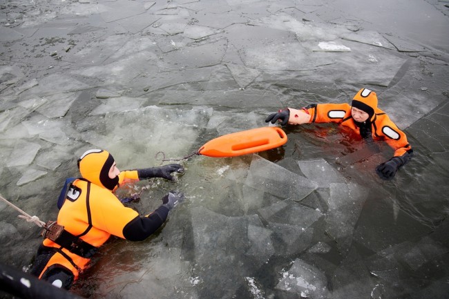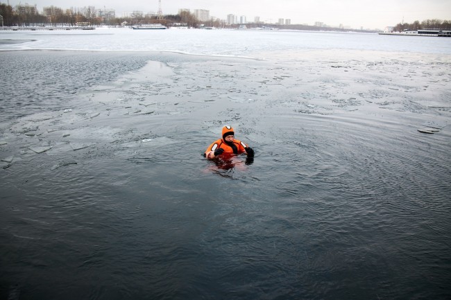 «Добавлю ещё пару советов из личной практики. Если вы провалились под лёд, постарайтесь подтянуть толчковую для себя ногу к кромке льда с противоположной стороны. Упритесь ею и постарайтесь выбраться на поверхность. И ещё один совет. Так как снег рыхлый, а силы ваши на нуле, выбравшись на поверхность, двигайтесь перекатами к берегу. Так сэкономите силы, и будет больше шансов, что не уйдёте под воду повторно», – дал советы преподаватель.